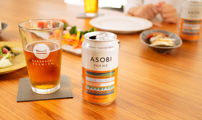 京都与謝野町産のホップを使用したクラフトビール「ASOBI」の定番「ペールエールスタイル」のビールです。