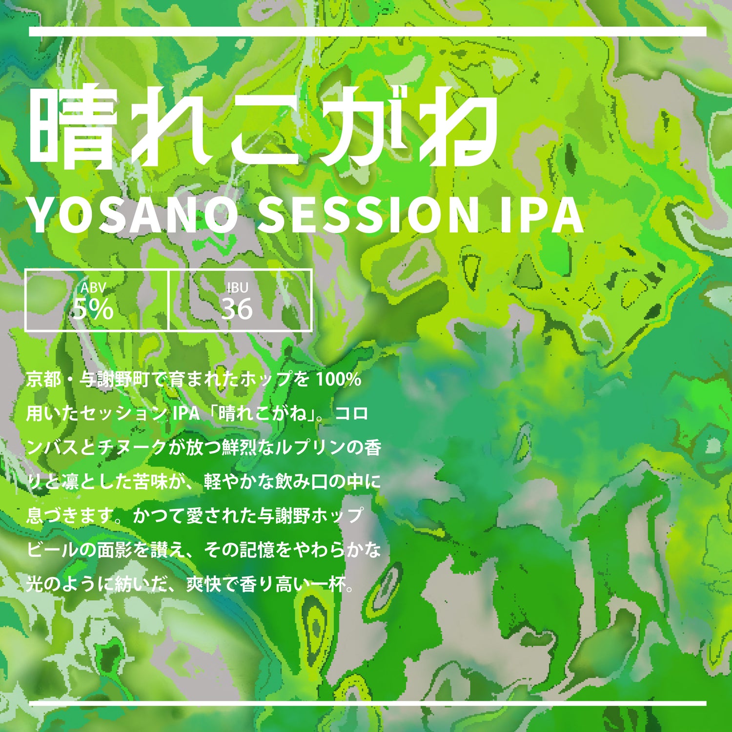京都・与謝野町で育まれたホップをふんだんに用いたセッションIPA「晴れこがね」。コロンバスとチヌークが放つ鮮烈なルプリンの香りと凛とした苦味が、軽やかな飲み口の中に息づきます。かつて愛された与謝野ホップビールの面影を讃え、その記憶をやわらかな光のように紡いだ、爽快で香り高い一杯。